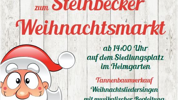 13.12.2025 Steinbecker WeihnachtsmarktAuch in Steinbeck ist wieder Weihnachtsmarkt.Der Dorfverein Steinbeck und der Siedlungsverein Heimgarten laden wieder zum gemütlichen Steinbecker Weihnachtsmarkt ein.Dieser findet am Samstag, 13. Dezember 2025, ab 14 Uhr auf dem Siedlungsplatz im Heimgarten statt.Weitere Details findet ihr hier https://dorfverein-steinbeck.de/elementor-8279/